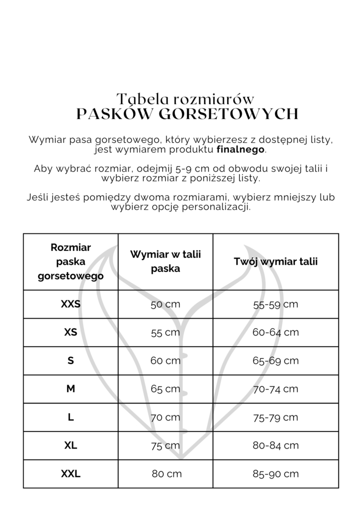 • Jakość: wszystkie gorsety i paski są ręcznie robione z dbałością o szczegóły i wygodę, co zapewnia idealne dopasowanie i długotrwałą trwałość.