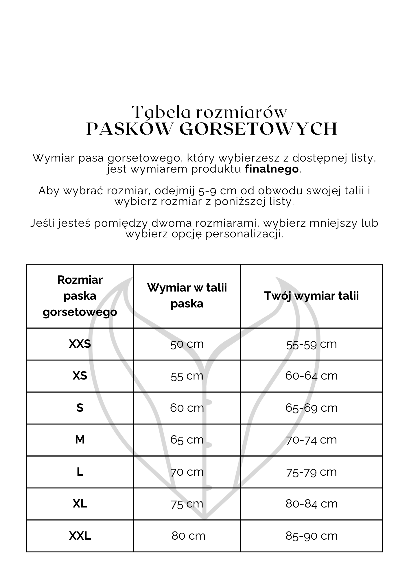 • Gorsety nie są przeznaczone do użytku przez osoby niepełnoletnie bez nadzoru.