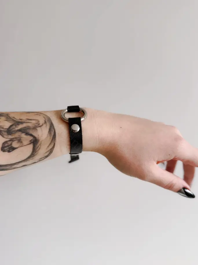 Opaski – bransoletki z miękkiej czarnej skóry z kółkami